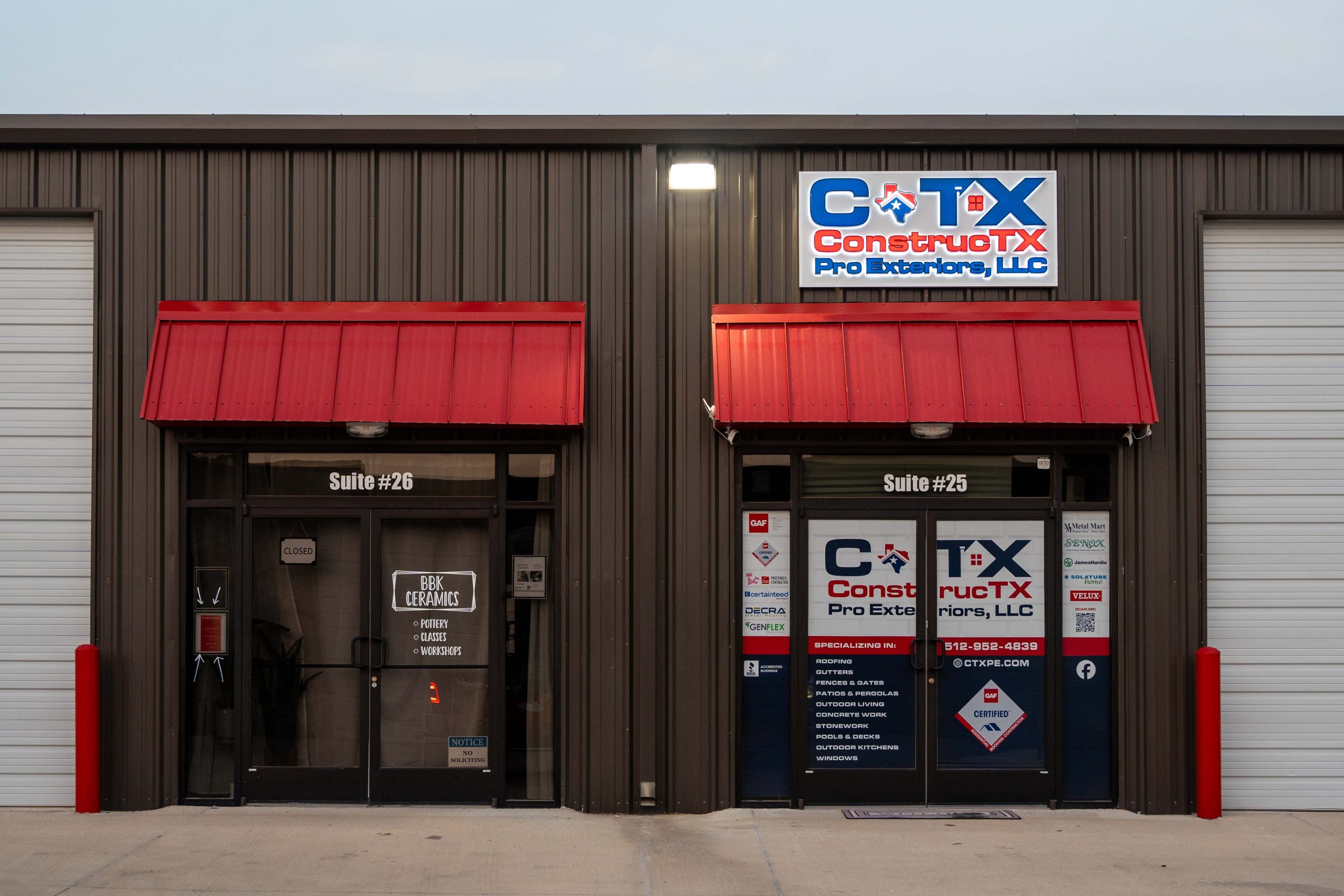 Affordable Storage warehouse rentals provide commercial flex space for rent. We help small business grow also, we provide individuals with some extra space. Our convenient Hutto, TX location offer a variety of flex space & shop sizes that range from 625 sq. ft. to 1800 sq. ft. for everyone’s needs at an amazing price. This location offers store fronts, small and large warehouses. This location also has shop rentals that display 14 ft. overhead doors, 110v & 220v electrical plugs, a walk-in door, and concrete driveways. The larger warehouses have additional features such as: private restrooms, offices and glass front doors. We offer warehouse rentals at an affordable price for a small business owner to grow or for an individual who needs additional space at a great price. Affordable Storage flex space, shop warehouses, and storefronts serve the communities of Hutto, Austin, Round Rock, Pflugerville, Taylor, and Georgetown, TX.